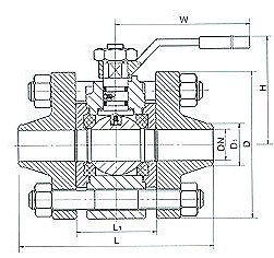 三、Q61N三片式對焊球閥PN32MPa主要連接尺寸及重量: